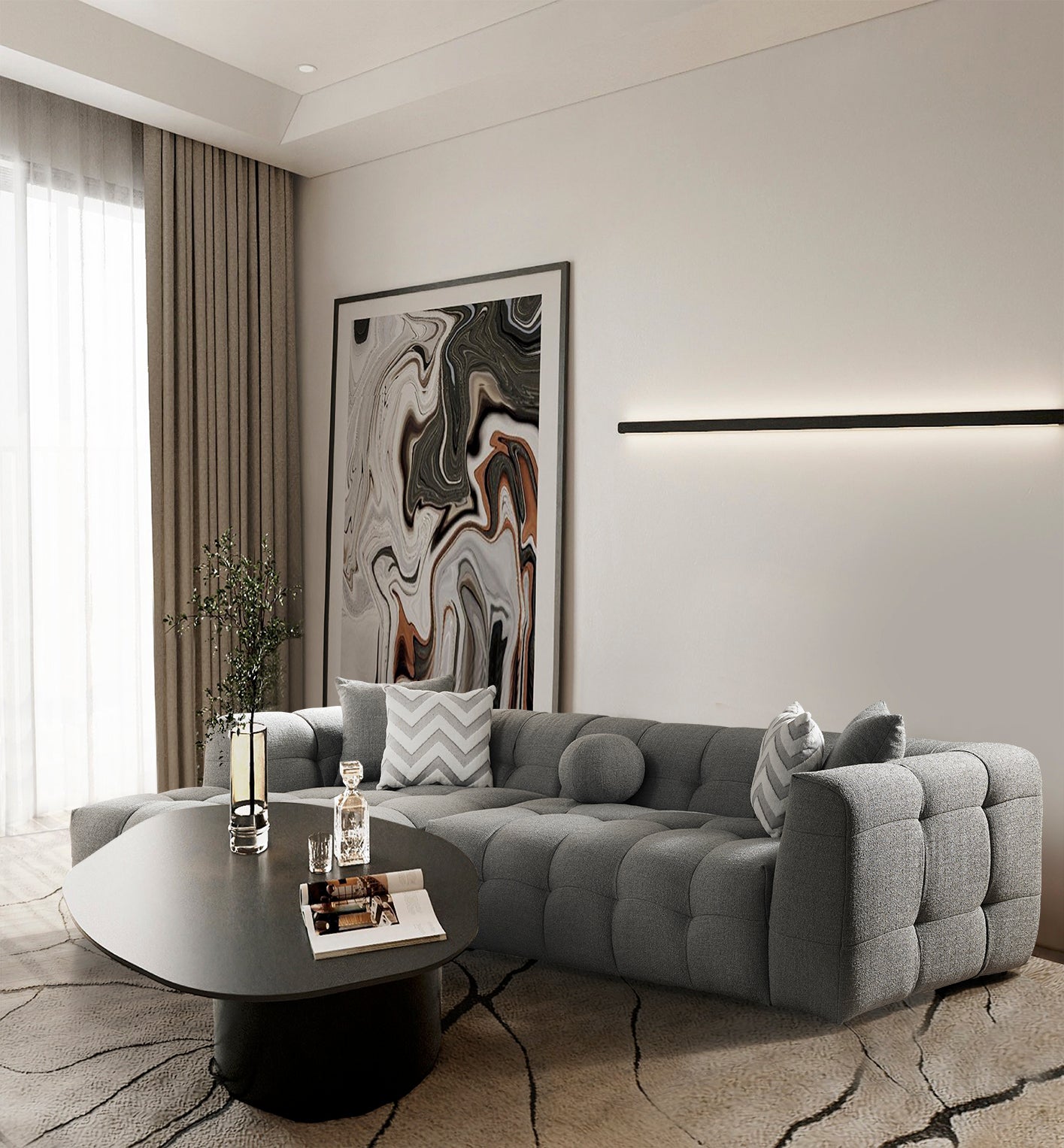 Amsterdam Üçlü Kanepe + Puf - Gri